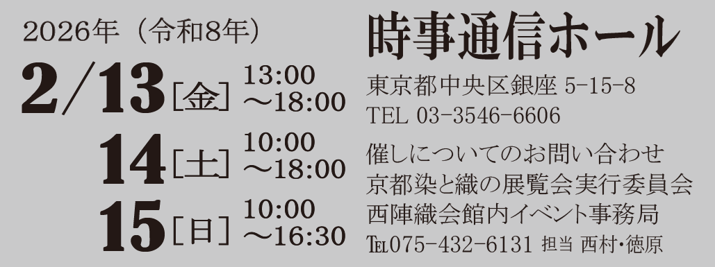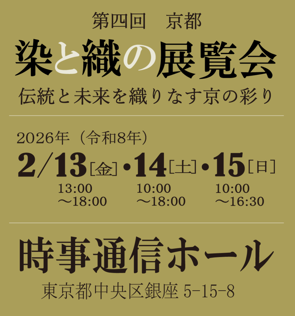 第三回・染と織の展覧会への入場は入場券が必要になります。入場券は下記ウェブサイトからお求めください。お一人様、前売り1,000円、当日1200円です。当日券はウェブサイトのほか会場にて現金でもお求めいただけます。なお高校生以下の方、障がい者手帳をお持ちの方は入場無料です。当日の受付にて証明書をご提示ください。